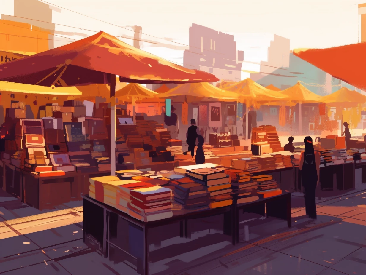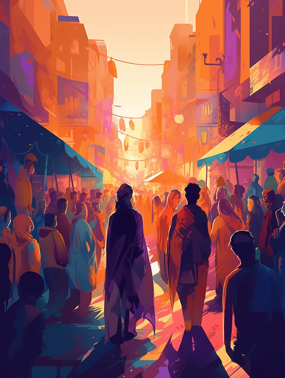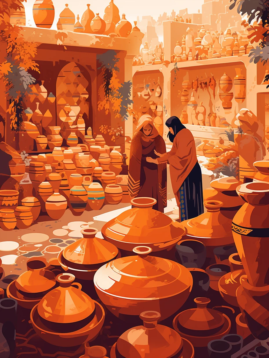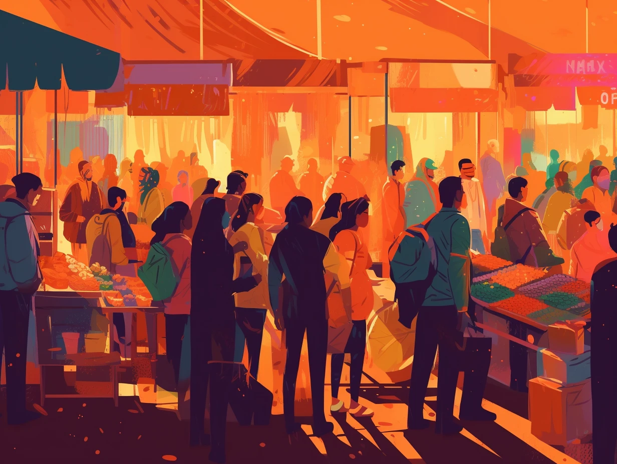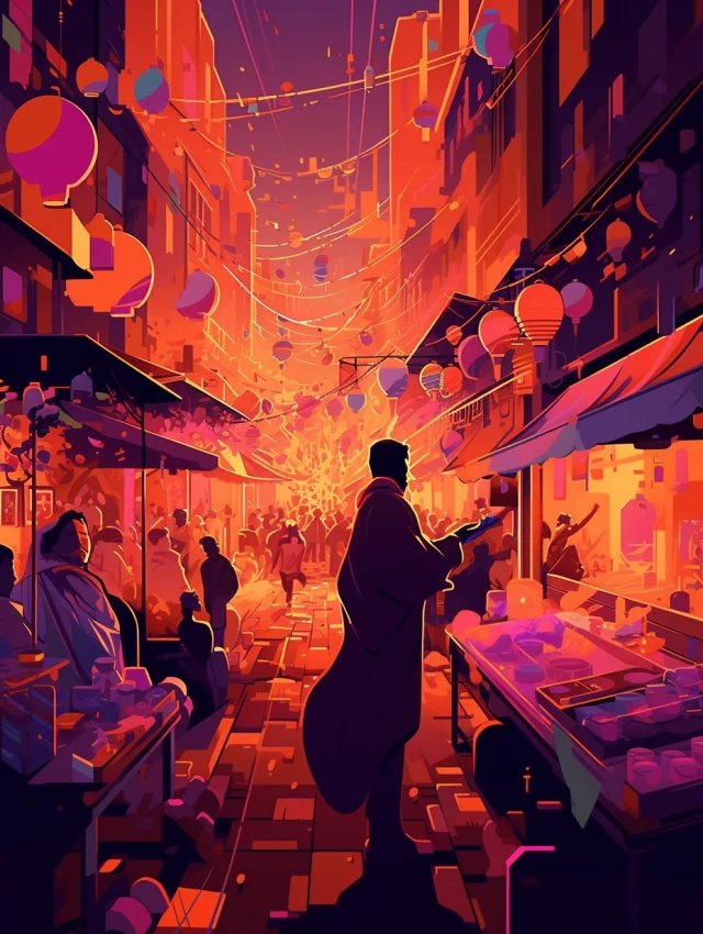 The air is thick with the aroma of spices, fresh fruits, and flowers, and the sounds of vendors hawking their wares blend together in a lively cacophony. The stalls are adorned with vibrant textiles and trinkets, and each vendor competes to attract customers with their unique offerings. Shoppers can find anything from handcrafted jewelry and ornate textiles to fresh produce and exotic spices. The marketplace is a hub of activity, with locals and tourists alike browsing and haggling for the best deals.