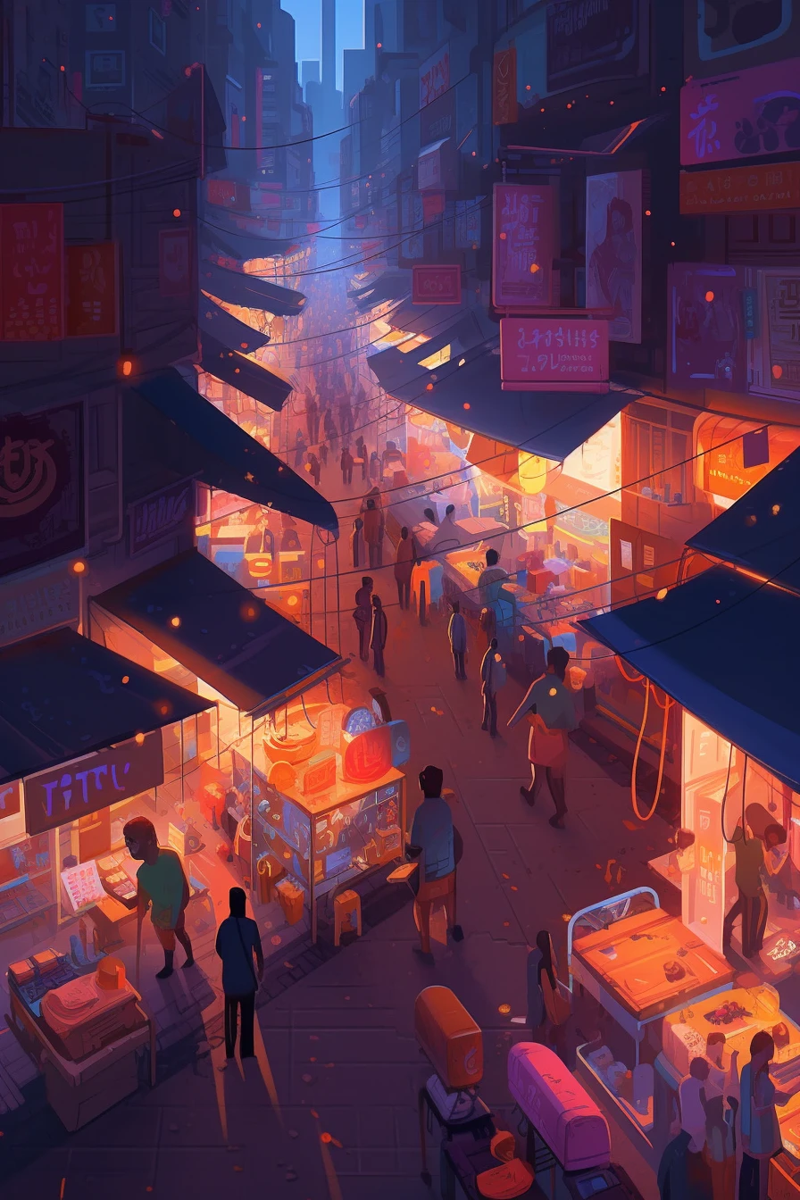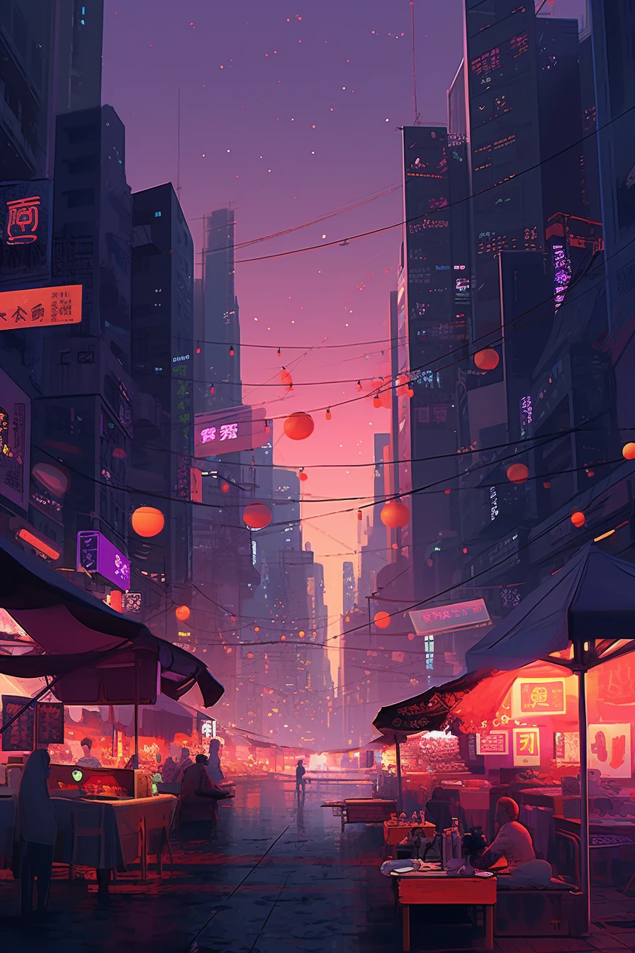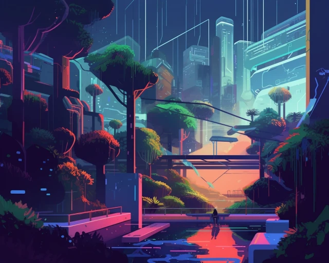 The futuristic cityscape is a testament to human creativity and innovation, a glimpse into a possible future where technology and design work in harmony to create a vibrant and dynamic urban environment.