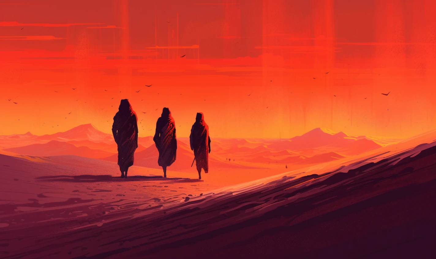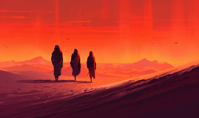 The relentless sun casts an intense glow over a stunning and unforgiving landscape. Towering sand dunes rise like colossal waves, their golden peaks shimmering under the blazing sun. This evocative scene captures the harsh beauty and unyielding spirit of the desert, where nature's extremes paint a mesmerizing canvas of contrasts, inviting adventurers to explore its secrets and challenges.